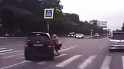 惊险瞬间 女子横穿马路惨被轿车撞倒