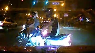 缺德又嚣张!摩托车闯灯不成故意挡路