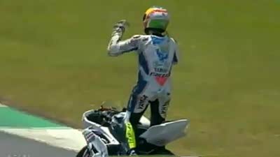 实在太囧了!摩托车手比赛忘记最后一圈