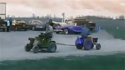半斤八两!搞笑的迷你版拖拉机比赛