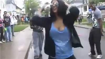 乐极生悲!美女当街热舞被来车顶翻