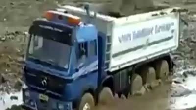 眼睛是很好欺骗的!看大卡车泥潭脱困