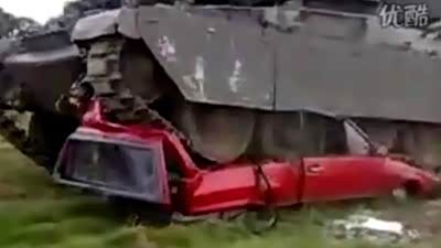 太震撼了 看坦克蛮横碾压汽车的全过程