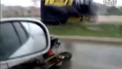 半裸出镜 国内牛人自制卡丁车雨天上路