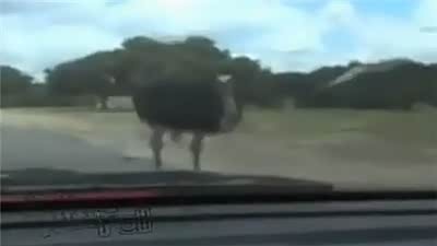 吓坏了美女!当散养鸵鸟迷上了小汽车