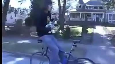 张果老传人!特技雷人倒骑自行车弹琴