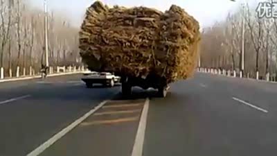 乡间大逃亡!警车堵截严重超载农用车