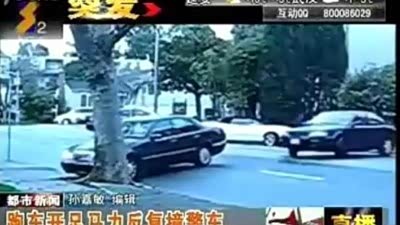 横穿马路的敏捷跨栏女侥幸逃离车祸