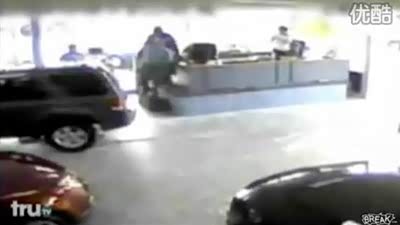 上帝的惩罚!愤怒客户开车冲入销售大厅