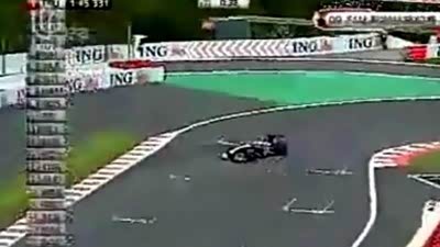 刺激的一次的碰撞F1赛车手被撞后飞走