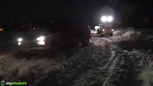 大块头也没辙 皮卡深陷雪中被艰难救援