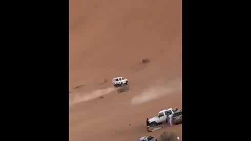 太惊险了 SUV沙漠爬坡差点与别车相撞
