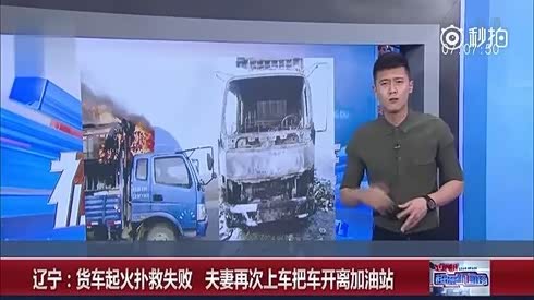 货车起火无法施救 夫妻上车开离加油站