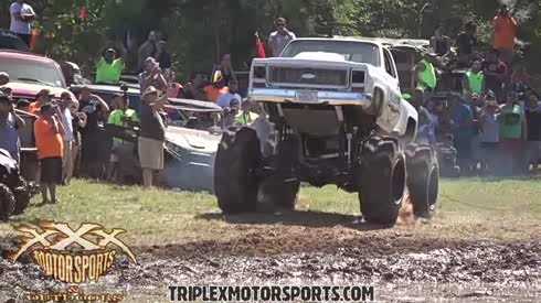 太疯狂了 实拍大脚车猛轰油门闯泥潭
