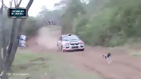 差点送了命 赛车越过了一条最幸运的狗