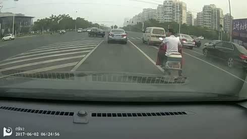 司机吓坏了 电动车突然蹿出险酿事故