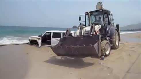 途乐沙滩陷车 不能自拔 还得拖车施救