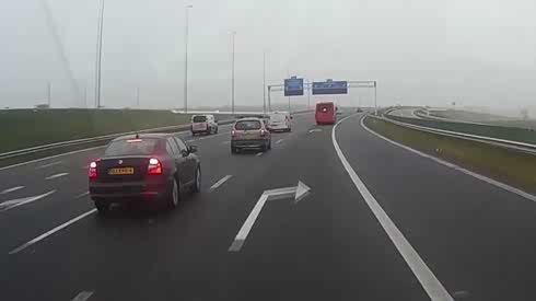 真是太危险了! 小车高速路上突然急停
