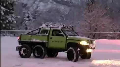 玩就玩过瘾 六轮皮卡雪地中漂移画圈