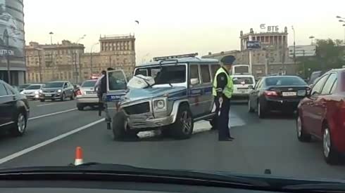 惨烈车祸 奔驰G级警车对撞奔驰G63 AMG