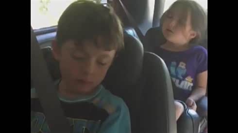 注意节奏 搞笑两儿童车内睡着左右摇摆