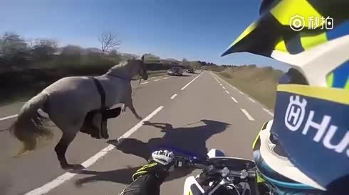 还有这操作 公路上骑摩托遛马还逆行