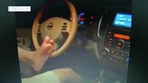 千万别模仿 男子边玩手机边用脚开车