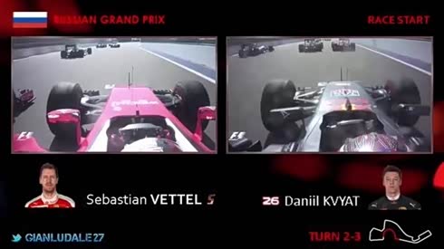 科维亚特与维特尔在F1俄罗斯大奖赛碰撞
