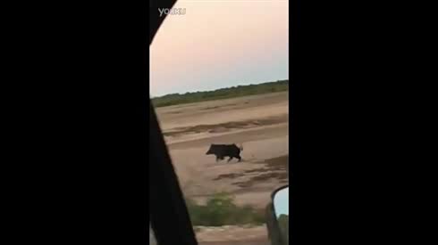 跑得真快!司机开车追逐挑逗大野猪
