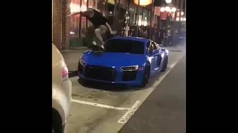 车主呢? 实拍滑板男子从奥迪R8上驶过