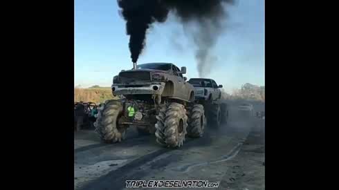 真是难分胜负 实拍两辆大脚车玩儿拔河