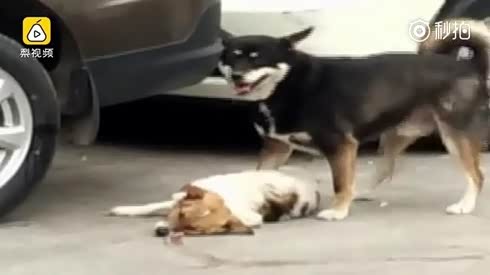 小狗被车撞死 它的同伴一直守在身旁