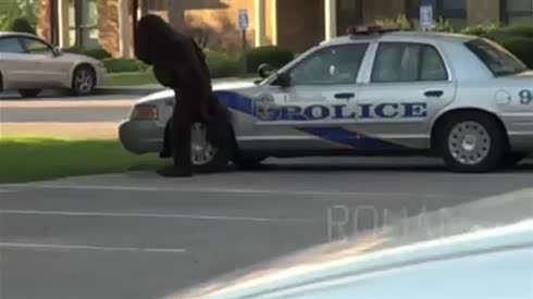 闲的没事干 看屌丝假扮动物戏耍警察