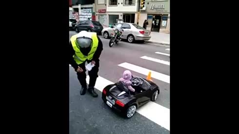 这么小就吃罚单 宝宝驾玩具车上路被拦