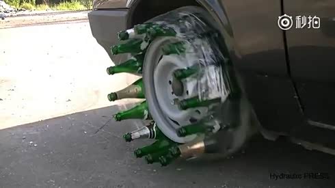 还是外国人会玩 用啤酒瓶制造汽车轮胎