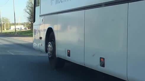 这是什么情况?大巴车左前轮离地行驶
