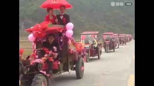 这还挺拉风的!手扶拖拉机婚礼车队