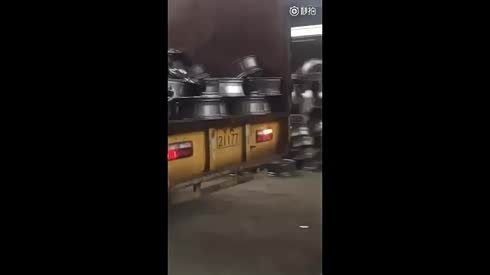 可怜的轮圈 实拍大货车暴力卸货方式