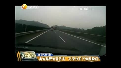 实拍 奥迪Q5追尾大货车 惊魂瞬间