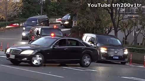 真够隆重 安倍晋三的车队这样并线的