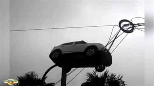 终结者 轿车被货车上的机械手臂蹂躏