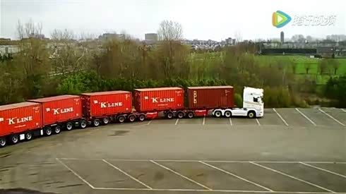 庞大的身躯!实拍超长的大货车转弯