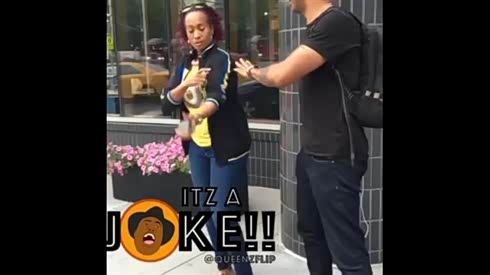 饶不了你 黑人胖哥和女子的玩笑开大了