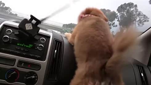 主人也够坏的 汽车雨刮器把狗狗逼疯了