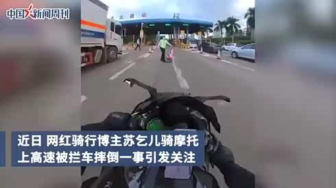 骑摩托上高速,疑被粗暴拦截致摔倒