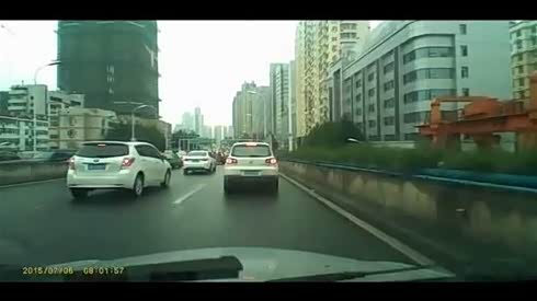 丰田强行加塞 途观毫不示弱 蹭上也不停