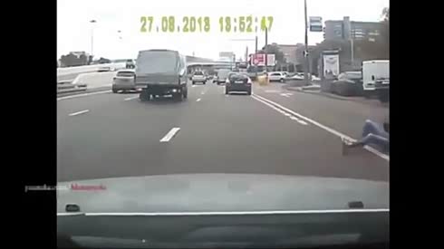 什么叫牛掰 小孩滑旱冰从众车下穿过