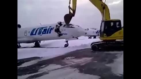 不满被解雇 猛人开挖掘机铲断飞机头