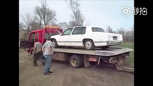 新的卸车方式吗?轿车被拖车暴力蹂躏