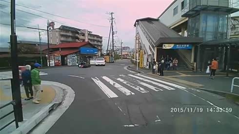 翻滚大叔 卡车轮下迅捷翻滚逃过一劫